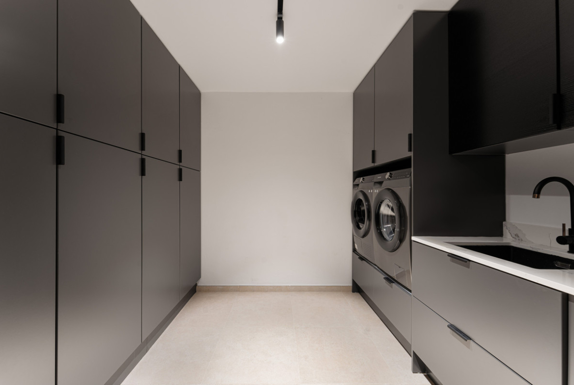 The outdoor areas have been thoughtfully designed with both aesthetics and practicality in mind, including an outdoor kitchen, BBQ and TV lounge area. The southwest-facing garden features automatic irrigation, mature lemon, orange, and mango trees, and evening lighting that enhances the property’s ambiance. The integrated pool cover and natural stone wall tiling add elegance while protecting the pool system, which is powered by solar energy and includes a hidden UV cover—ensuring warm water even in winter with minimal energy usage.