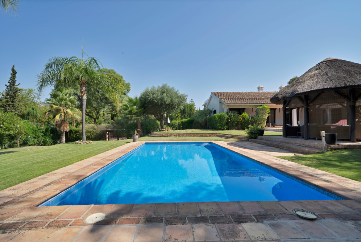 Timeless Elegance on the New Golden Mile’s Frontline Golf Welcome to this exquisite four-bedroom residence in El Paraíso, set in the very heart of the prestigious New Golden Mile one of the Costa del Sol’s most sought after enclaves. Boasting three sumptuous ensuite bathrooms and an additional guest bathroom. This elegant home rests upon an expansive 2,500 m² plot adorned with lush, mature gardens of exceptional beauty.Commanding a privileged frontline position overlooking El Paraíso Golf Club and a mere five minutes from the golden sands, the property offers an unrivalled sense of privacy and tranquillity, whilst remaining within easy reach of a wealth of amenities.Within, every comfort awaits from the indulgence of a sauna and jacuzzi to a fully equipped gymnasium and a stylish games room. Secure parking is provided by a private indoor garage for two vehicles, complemented by a covered outdoor space.This is far more than a residence, it is the embodiment of refined coastal living.The abbreviated information document is available to you. Expenses: Taxes (ITP or VAT+AJD) + Notarial and registration expenses.ERE