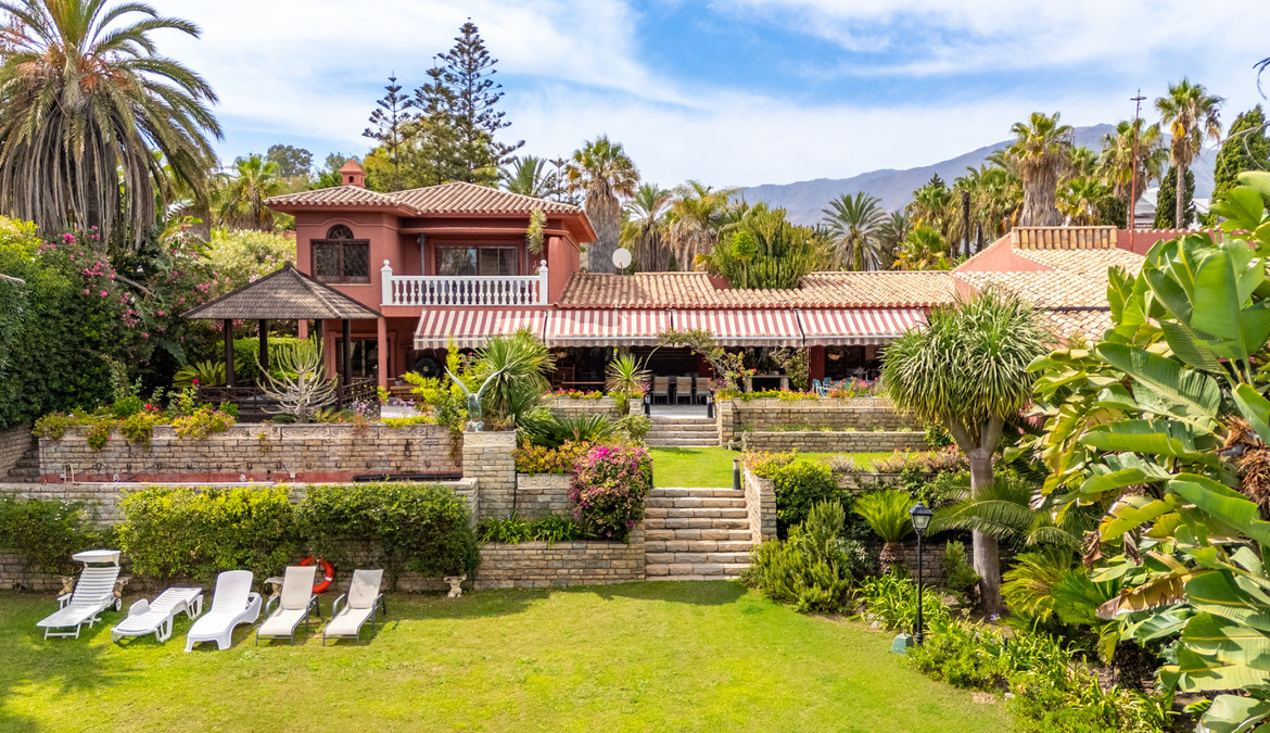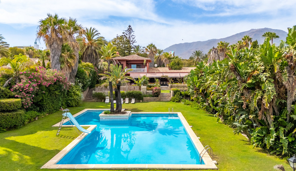 Situated on an extraordinary frontline beach plot of over 7,600 m², this magnificent estate offers a rare opportunity to own one of the largest and most private properties on the New Golden Mile. With panoramic sea views, mature tropical landscaping, and an unbeatable location just minutes from Estepona and its top amenities, this villa is a true coastal sanctuary.