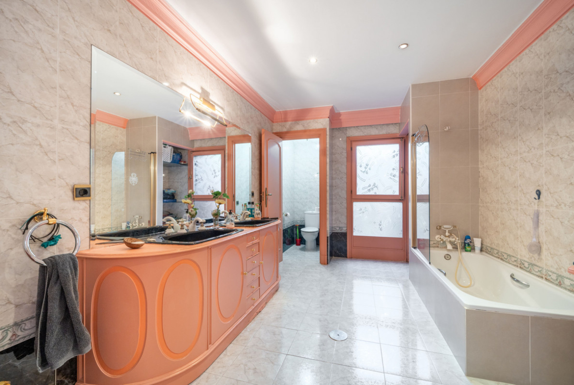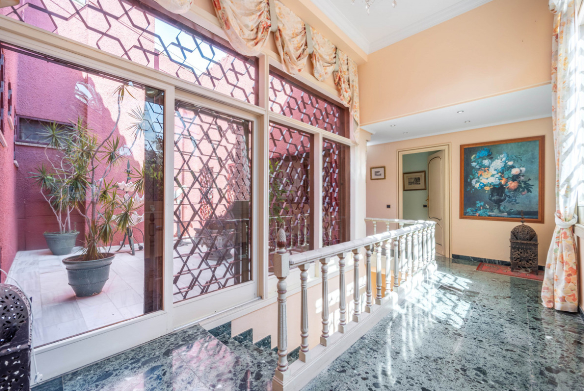 The existing villa spans 1,098 m² of built space and features nine bedrooms and six bathrooms, arranged in a classic Mediterranean layout. The residence is surrounded by vibrant gardens and includes a large swimming pool, a private tennis court, and expansive lawns—ideal for outdoor entertaining or quiet moments of relaxation.