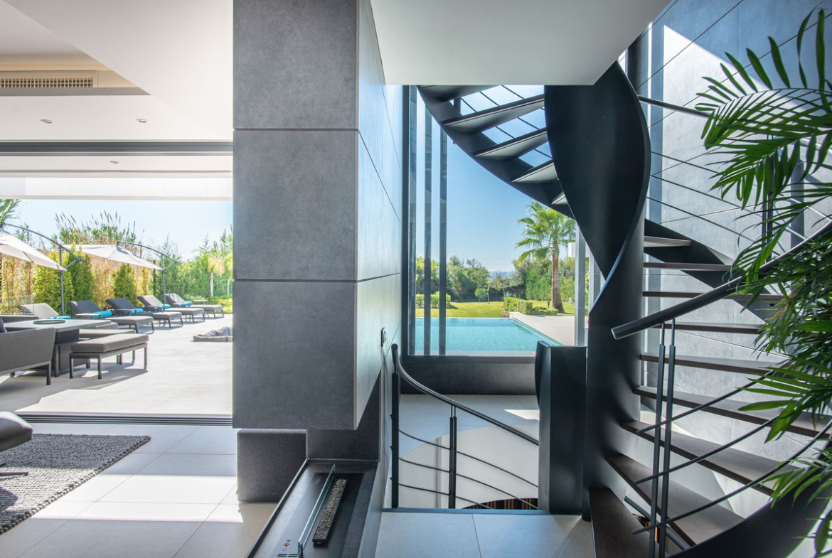 The property has been carefully designed with energy efficiency in mind. It features a state-of-the-art domotic system that controls interior and exterior lighting, air conditioning, a heat pump for the swimming pool, intercom, and alarm system. A 16-panel photovoltaic solar energy system powers the villa, with smart monitoring via an app to track consumption and store excess energy in a private power bank.