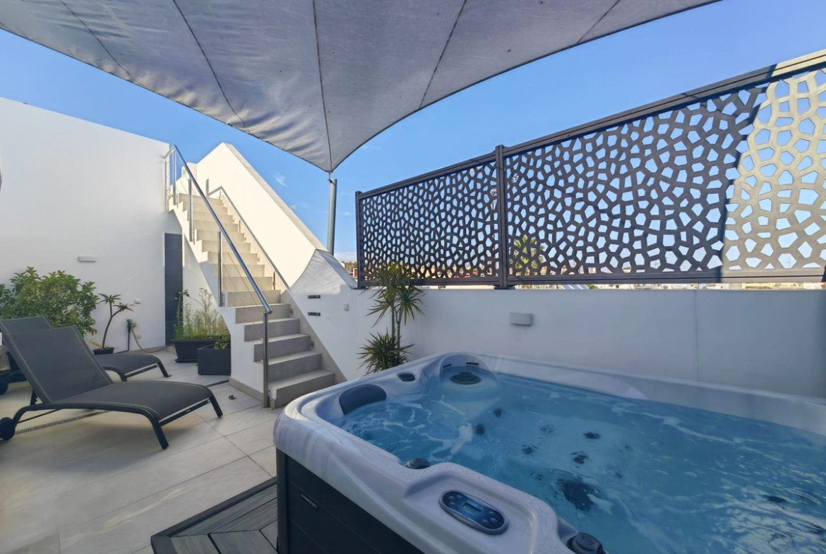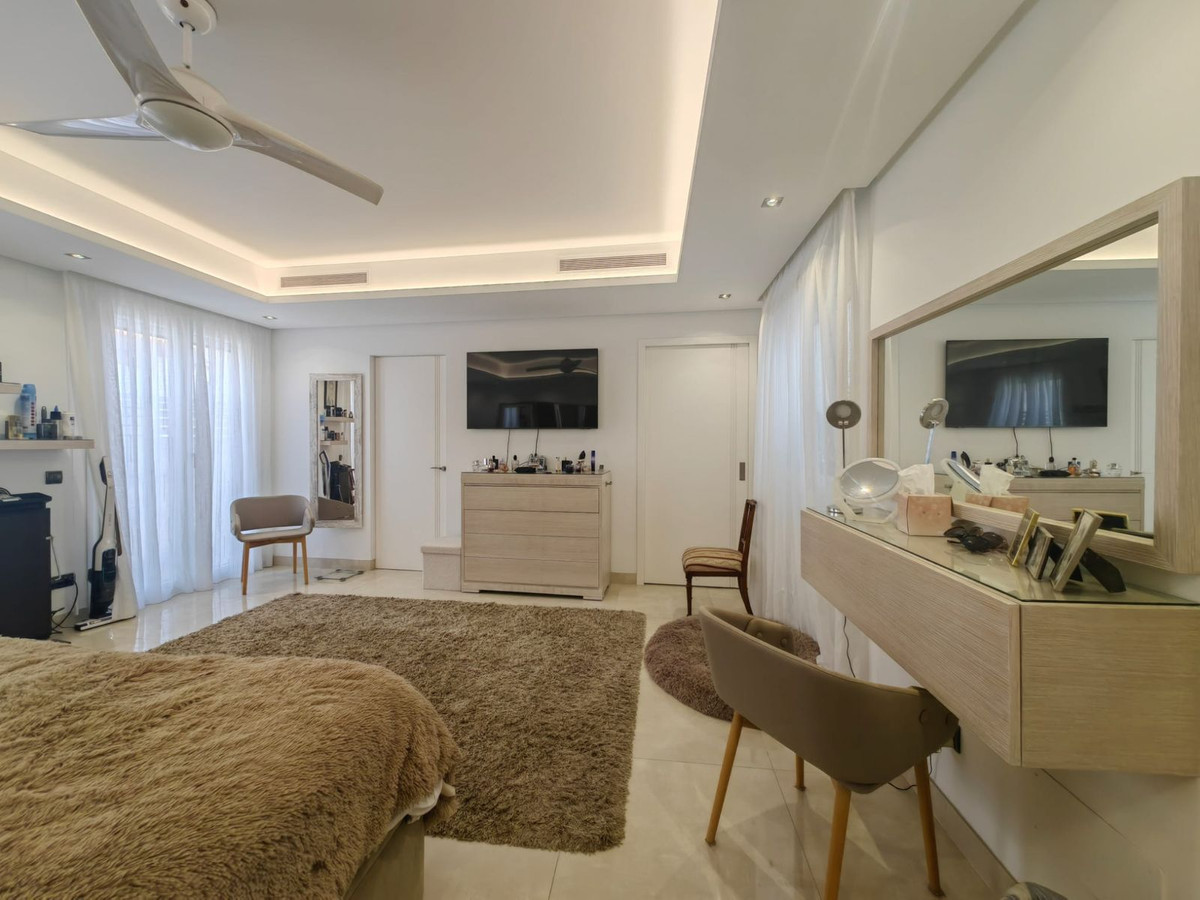 A second main bedroom suite, also with walk-in wardrobe and ensuite, shares this floor with a bright, open area for additional storage and a sun terrace complete with jacuzzi, outdoor hot/cold shower, and chill-out zone. Glass doors, open sky, and natural breezes make this a true sanctuary.