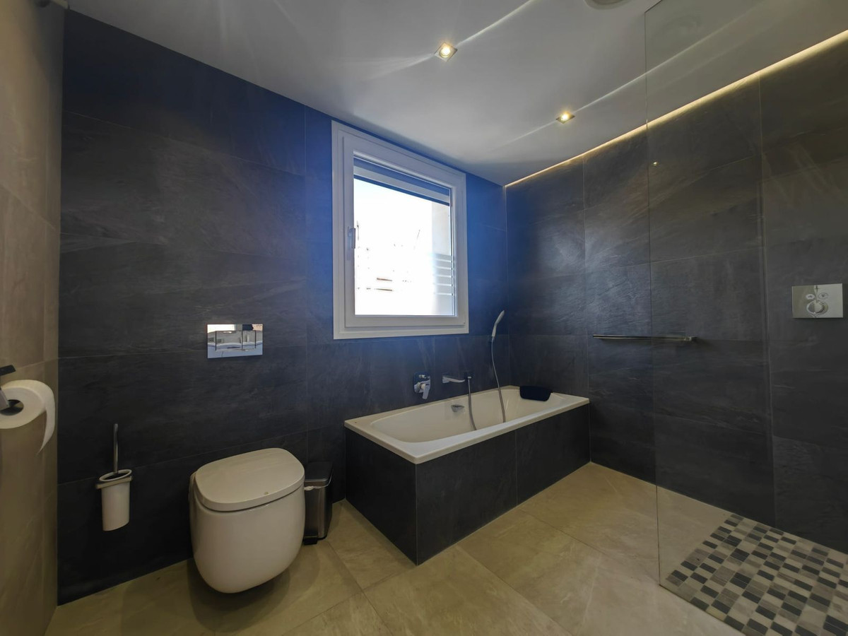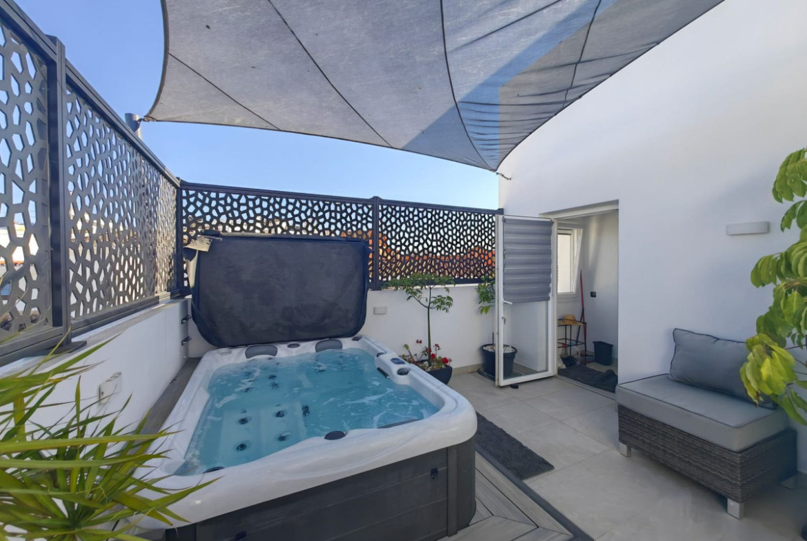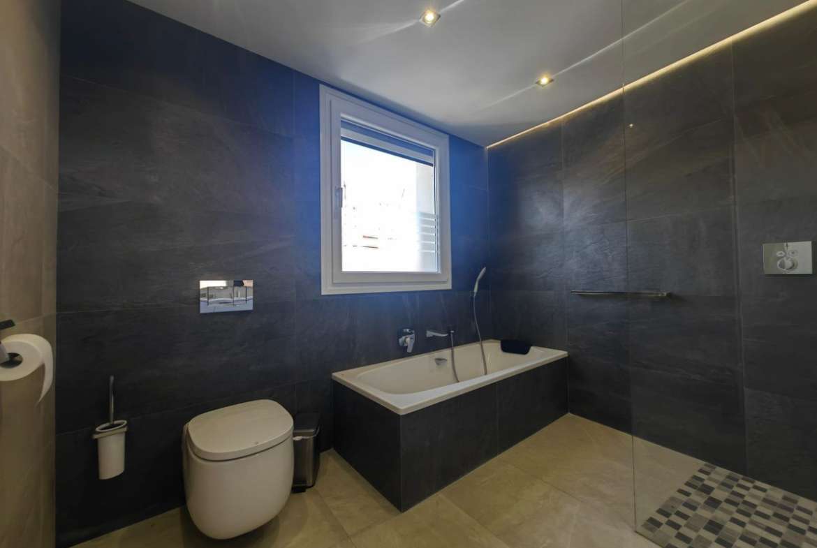 Above it all, the rooftop houses the solar panel system which supports electricity and hot water — a modern, sustainable touch that complements the villa’s thoughtful design. The panoramic views across rooftops, mountains, and the sea are simply breathtaking.