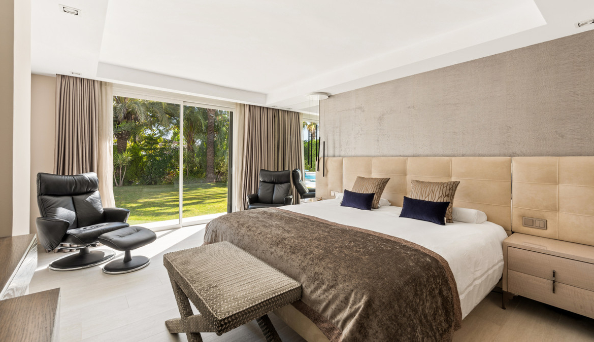 On the garden level there are five bedrooms with ensuite bathrooms. With access from the exterior there is another small bedroom and bathroom and a gymnasium.