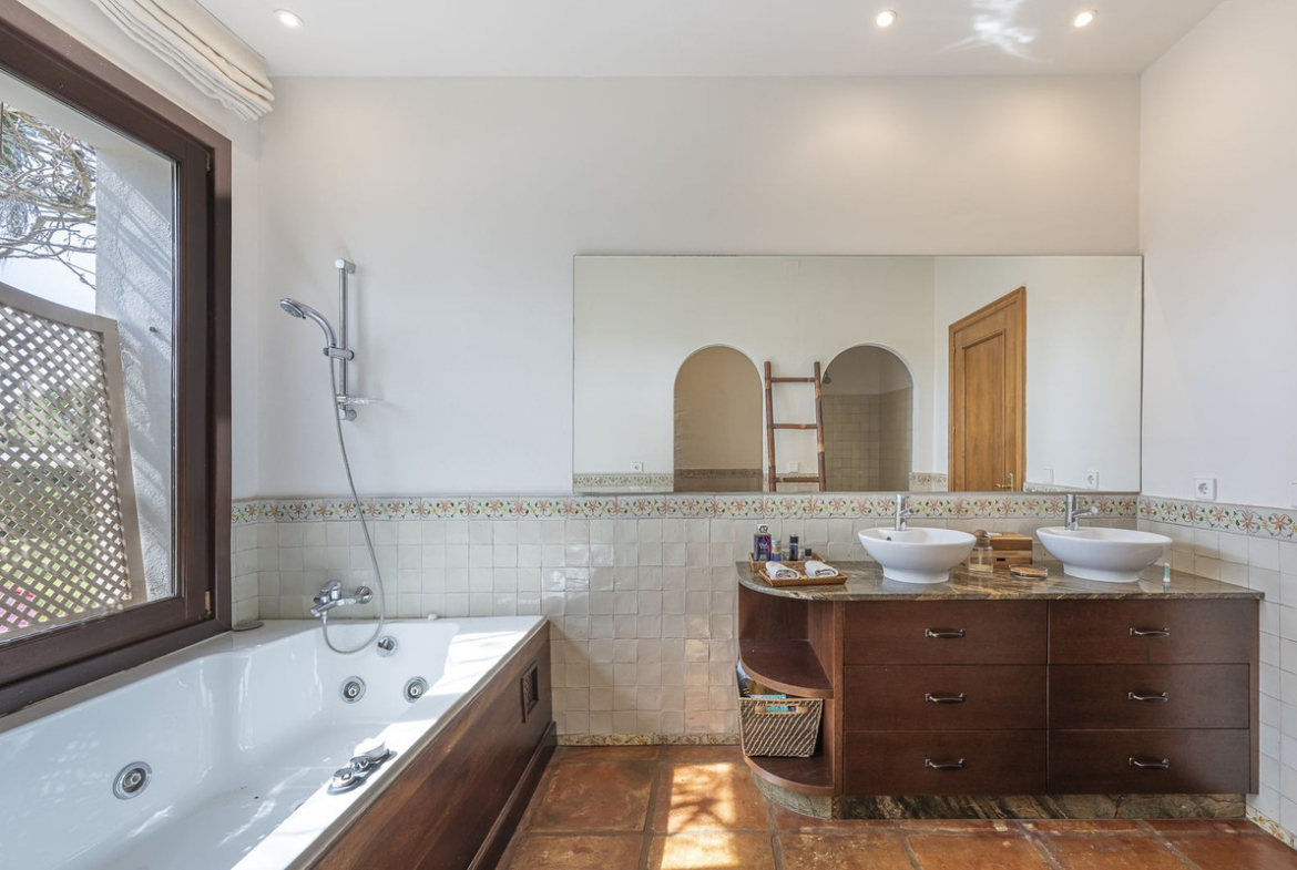 This impressive villa in Sotogrande, one of Spain’s most exclusive residential areas, combines timeless elegance with the highest level of comfort. Situated on a spacious 2,500 m² plot, the property boasts a built area of approximately 600 m², making it perfect for sophisticated living.