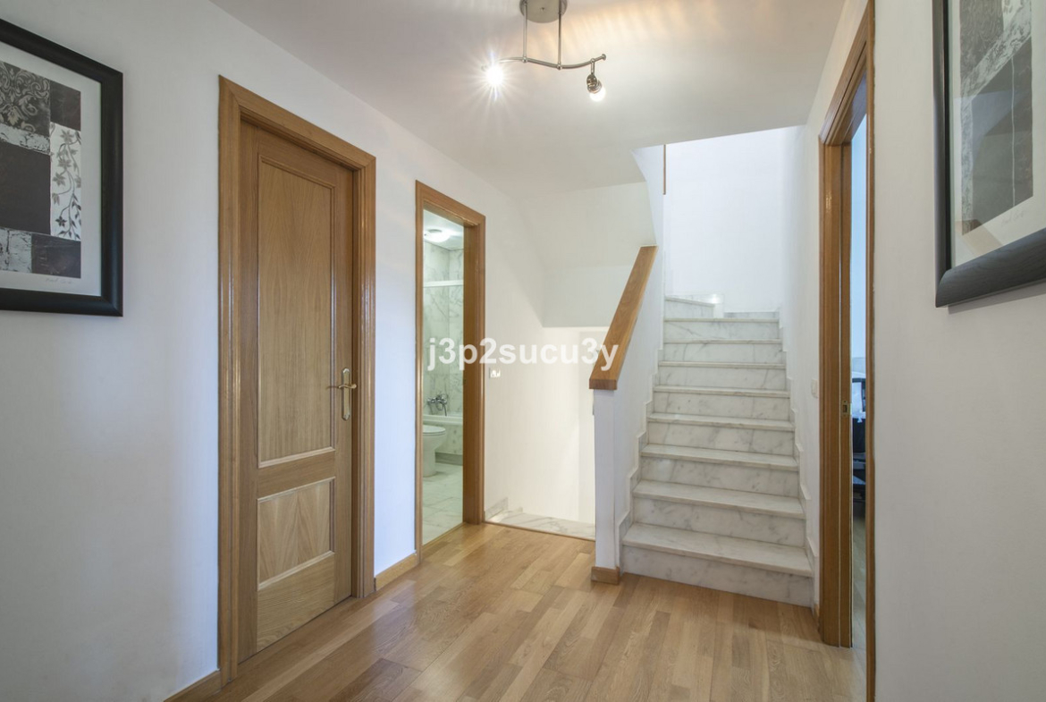 On the lower floor are the 3 bedrooms with fitted wardrobes and 2 bathrooms. The master bedroom has an en-suite bathroom and access to another terrace with the same open panoramic views of the mountains and surrounding greenery. On this floor there is also a utility room which provides additional storage space.