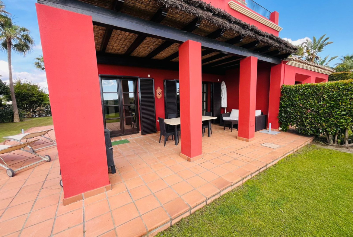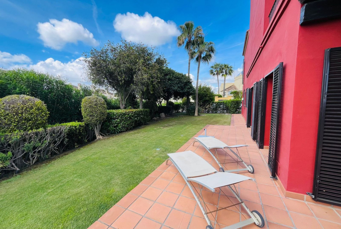 This large 2 bedroom, 2 1/2 bathroom semi-detached house with sea views in the exclusive Los Cortijos de la Reserva offers something truly unique – almost 200m2 of space with a huge wrap around garden of 334m2. The garden has sun from first thing in the morning to late afternoon.